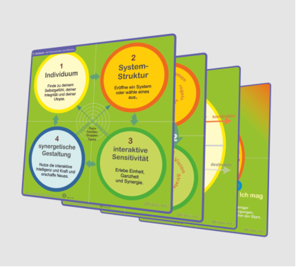 WirwolltenGFK-plusmöglichstpraktischgestalten undspielerischumsetzbarmachen.ImLaufeunserer ForschungensindunsdieGFK-plus-Karteninden Sinngekommen.Wirhabensienachundnach designtundsiesindweiteruntenabgebildetund erklärt.DieGFK-plusKartenstehenzurfreien Verfügung(cc-commons),d.h.jederdarfsieprivat und beruflich als Arbeitsmaterial frei verwenden. Diese Karten sind unterteilt in:1.Basiskarten2.Vorbereitungskarten 3.Systemkarten4.Toolkarten5.ZusatzkartenDie Basiskarten, beschreiben den Vier-Schritte-Kreis. Mit den Vorbereitungskarten können sich alle für ein mit GFK-plus selbstorganisiertes Team vorbereiten. MitdenSystemkartenverstehtmandenUnterschiedzwischeneinemherkömmlichfunktionalenSystem undeinemGFK-plus-System.Sowohldie VorbereitungskartenalsauchdieSystemkartenbrauchtmannur einmal,nämlichumdieveränderteSichtweiseaufdasIndividuumunddasSystem(Team,Unternehmen, Initiative, Familie etc) zu verstehen. DieToolkartenandererseitshelfenimmerwieder,diewichtigstenAnforderungenaufdenvierGFK-plus-Feldernpraktischzulösen.DabeibrauchtmannichtalleToolkarten.Nimmdie,dieeuchzusagen.Wenn ihreuchunsicherseid,dannholteuchdasStarterpaketundichstelleeuchwelchefüreuerenFall zusammen.Die Zusatzkarten beleuchten einige sinnvolle Nebenaspekte, die hin und wieder interessant sein können.EsmachtvielleichtnichtsovielSinn,siegleichalleverstehenzuwollen.JenachAnforderungkannman sie Die Karten findest du in der GFK-plus App, im Download-Tool-Depot.