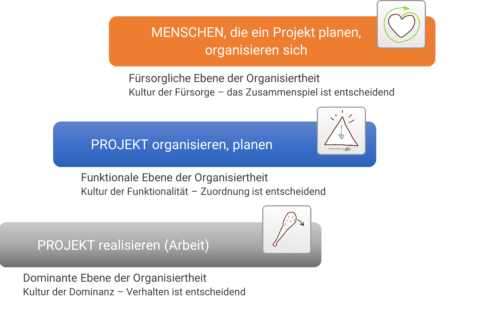 Projekt organisieren (Ebene 2) und realisieren (Ebene 1).