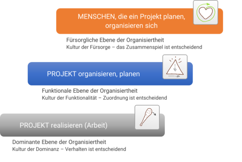 Projekt organisieren (Ebene 2) und realisieren (Ebene 1).